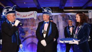 President Menno van De Blauwe Pony opende de avond met een warm welkom aan alle aanwezigen, hoogheden en bezoekende verenigingen. Na het uitwisselen van onderscheidingen volgde een bijzonder moment: het wisselen van de steken. De Blauwe Pony presenteerde trots haar nieuwe steken, mede mogelijk gemaakt door de steun van de Bemmel en Haalderenstichting, die hiervoor nadrukkelijk werd bedankt.