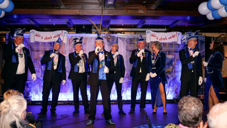 President Menno van De Blauwe Pony opende de avond met een warm welkom aan alle aanwezigen, hoogheden en bezoekende verenigingen. Na het uitwisselen van onderscheidingen volgde een bijzonder moment: het wisselen van de steken. De Blauwe Pony presenteerde trots haar nieuwe steken, mede mogelijk gemaakt door de steun van de Bemmel en Haalderenstichting, die hiervoor nadrukkelijk werd bedankt.