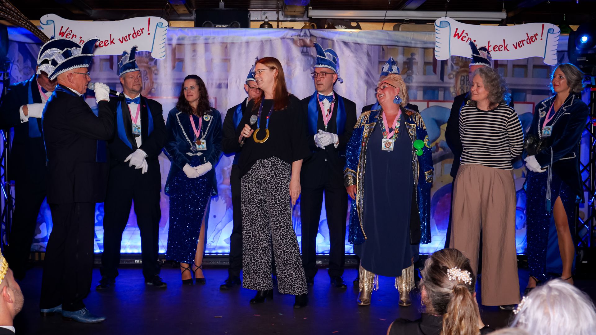 Een eervolle onderscheiding was er voor Hermi Linders, die werd gehuldigd voor zijn 11 jaar trouwe inzet als senaatslid. Daarna trapte De Blauwe Pony zelf de avond muzikaal af.