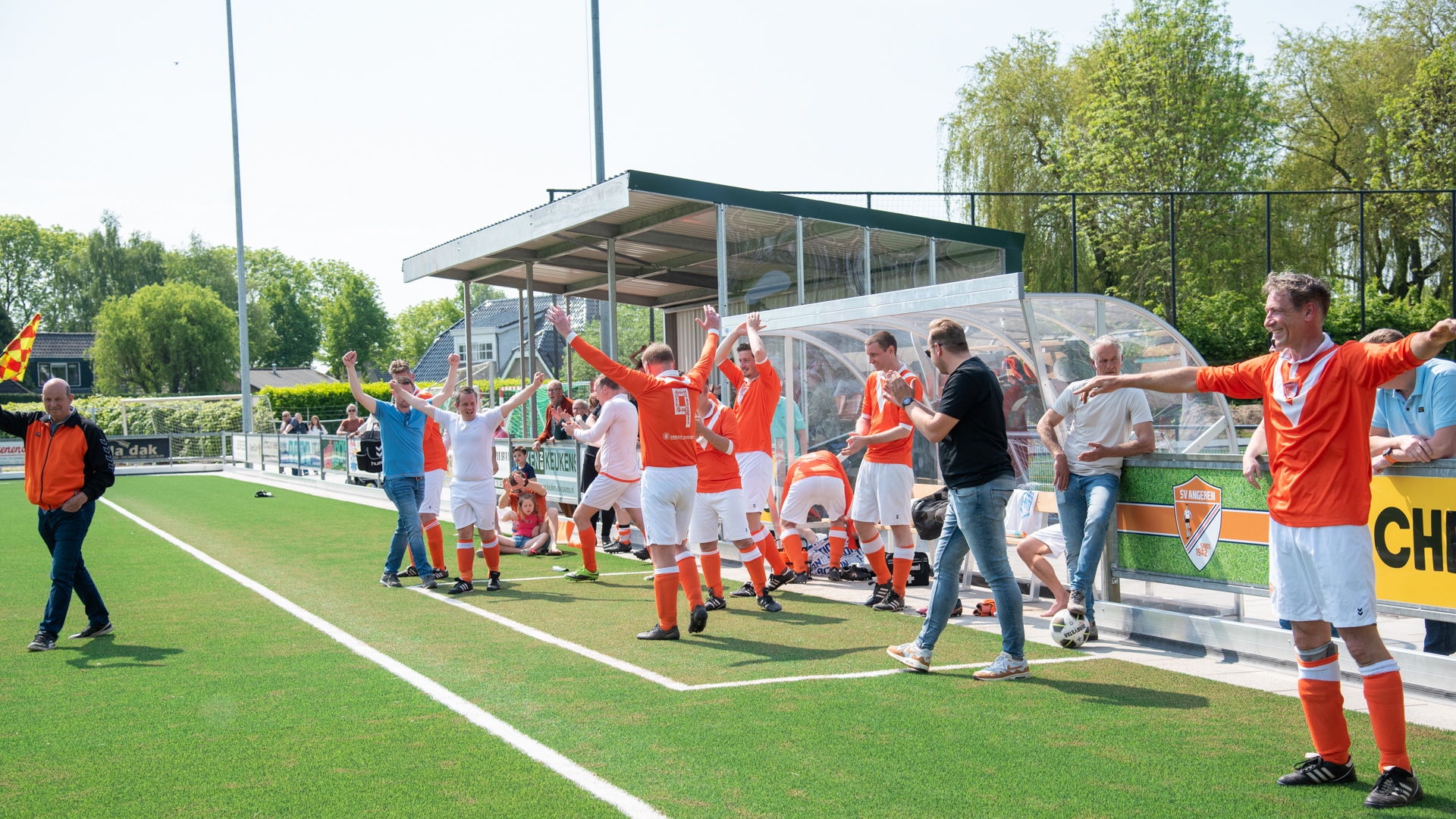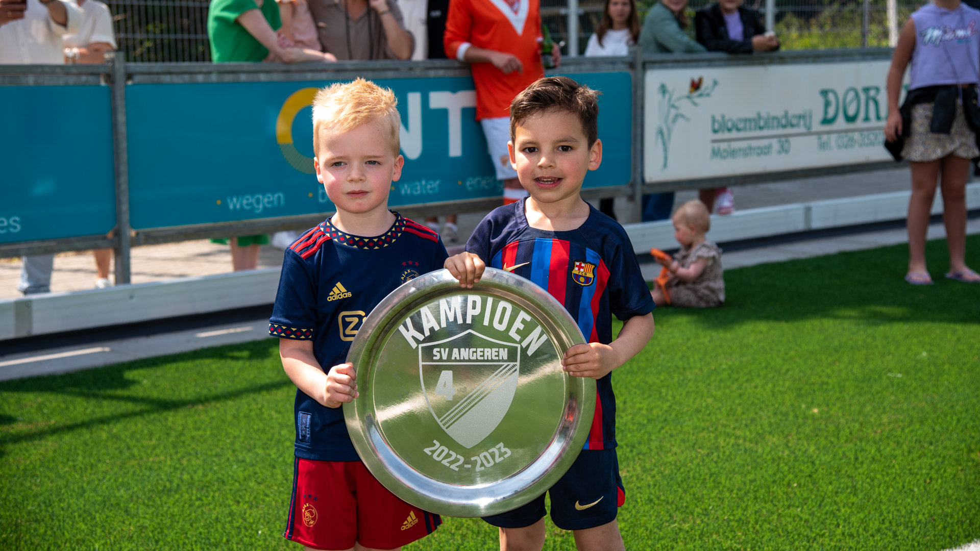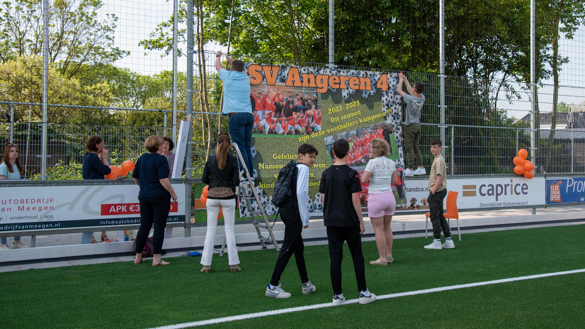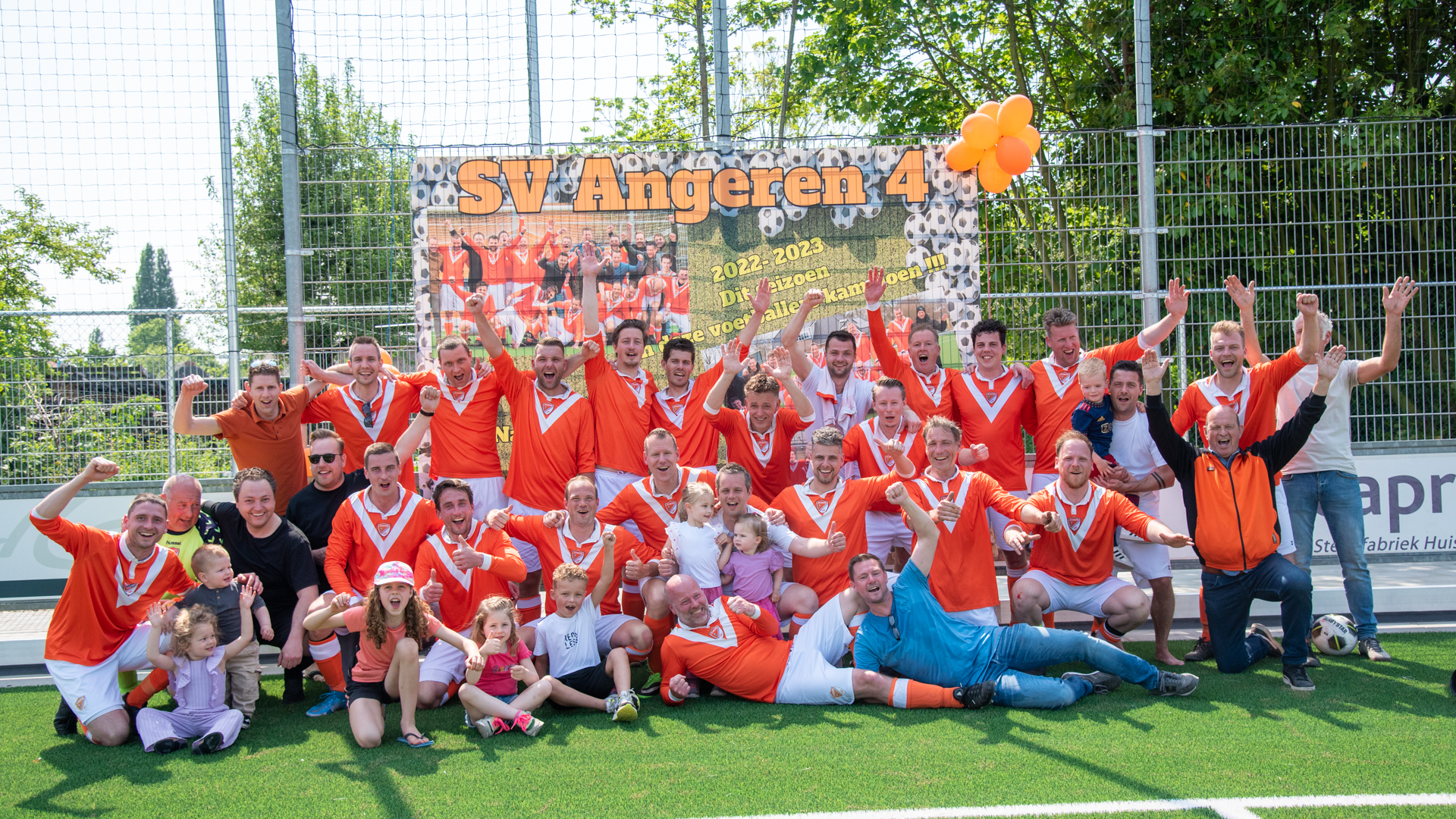 De grote wens van leider Arthur Maters was om kampioen te worden met het team Angeren 4. Zondag was de dag dat deze wens uitkwam. Het was een spannende wedstrijd. Na het laatste fluitsignaal was de stand 3-3 en mocht Angeren 4 zich kampioen noemen. De derde helft werd dan ook uitbundig gevierd in Angeren.