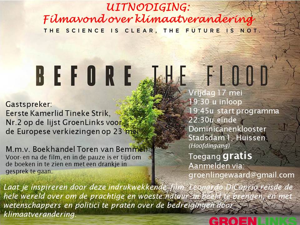 Acteur Leonardo DiCaprio reisde de hele wereld over om de prachtige en woeste natuur in beeld te brengen, en met wetenschappers en politici te praten over de bedreigingen door klimaatverandering. In de aanloop naar de Europese Verkiezingen vertoont GroenLinks deze film éénmalig op vrijdagavond 17 mei. Als gastspreker zal Eerste Kamerlid Tineke Strik, nr.2 op de GroenLinks lijst voor Europa, haar visie geven. De avond start om 19.30 uur in het Dominicanenklooster aan de Stadsdam in Huissen. Toegang is gratis. Wel graag aanmelden in verband met het beperkte aantal zitplaatsen.