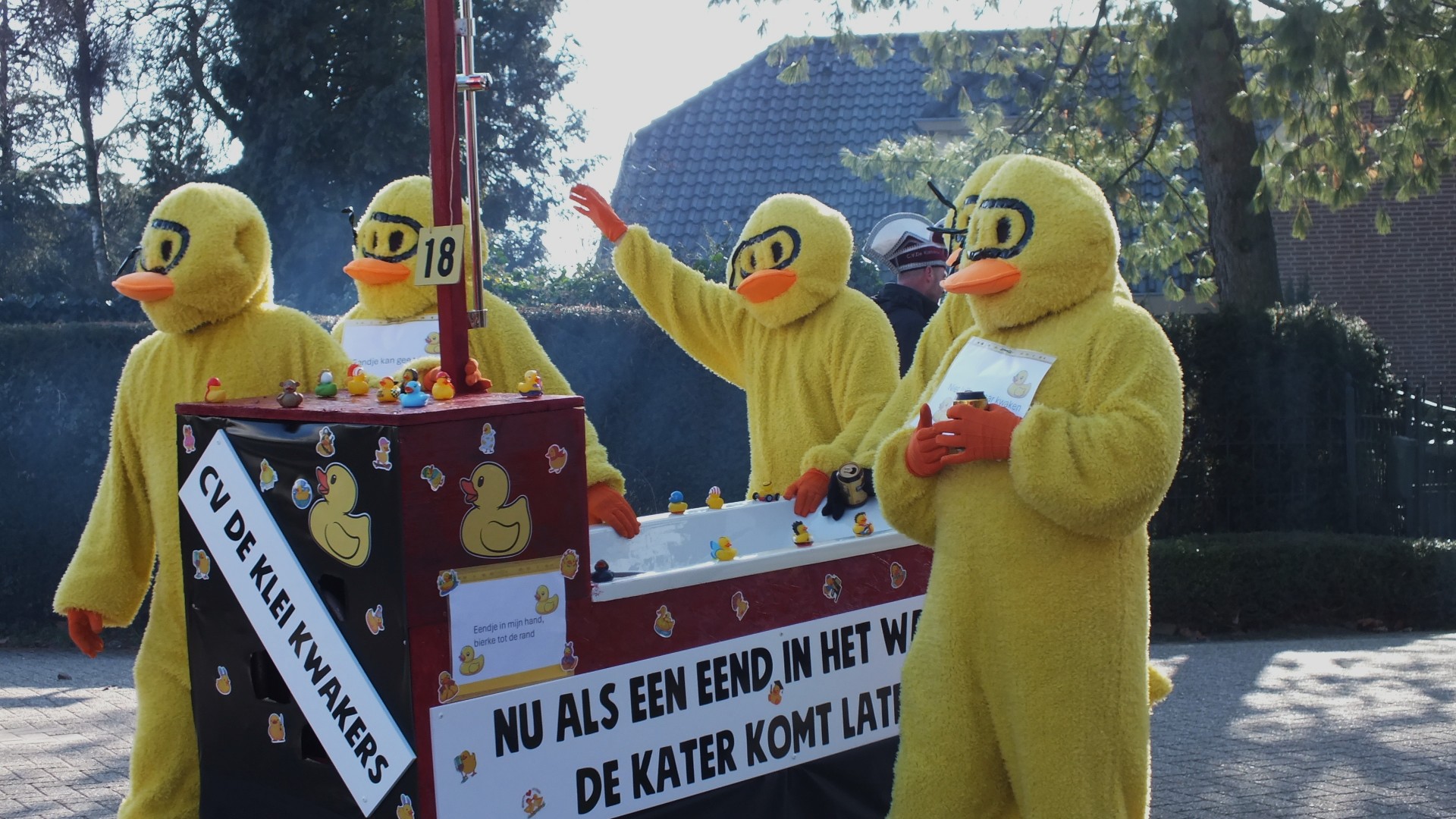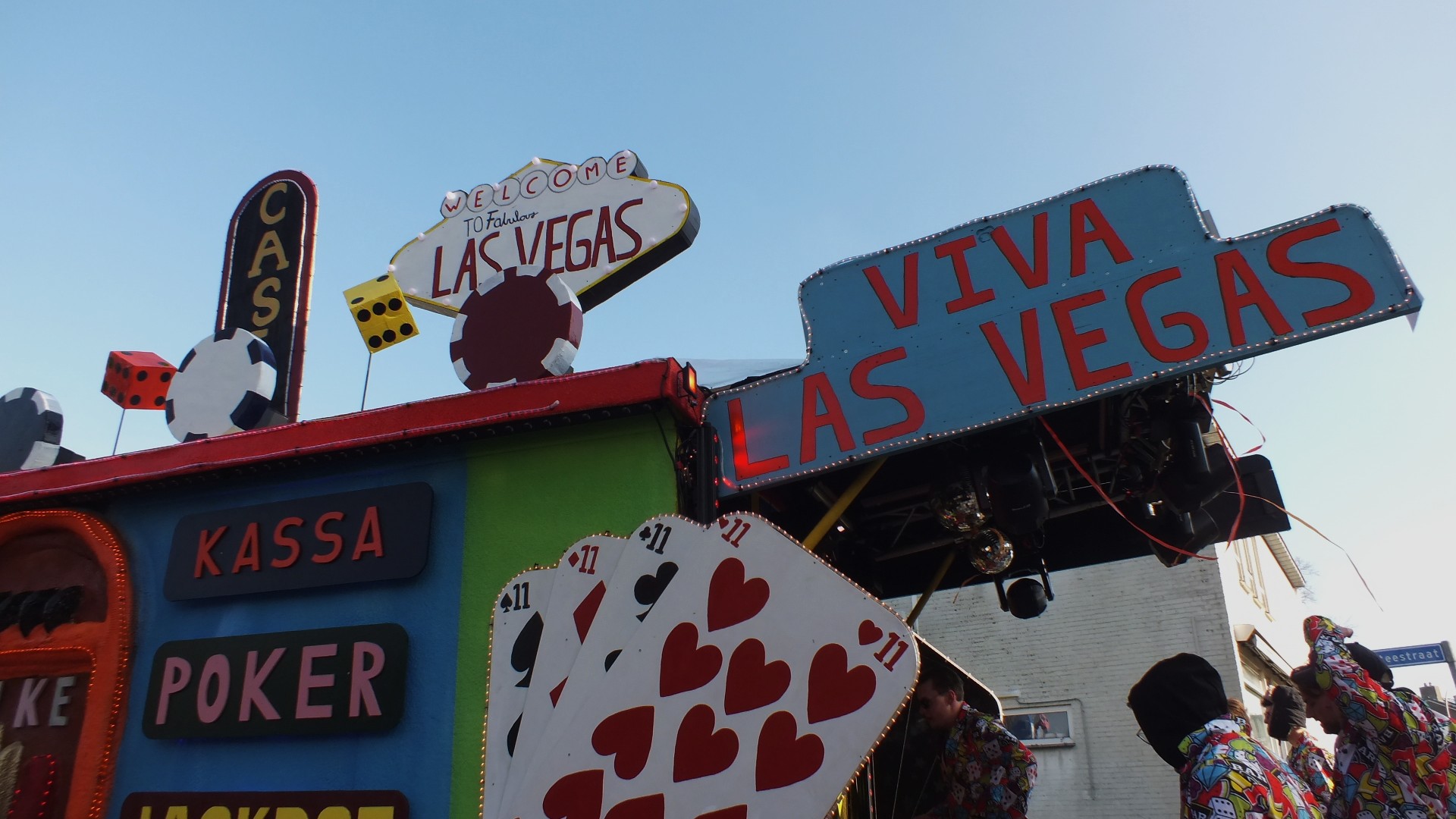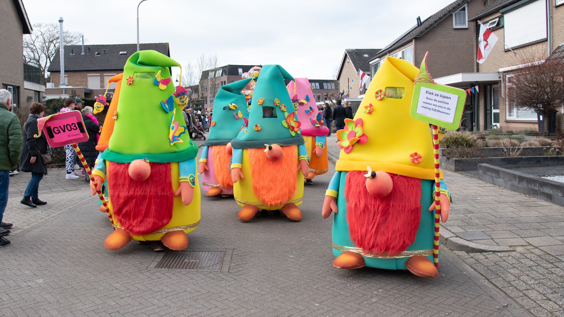Versierde praalwagens en inwoners