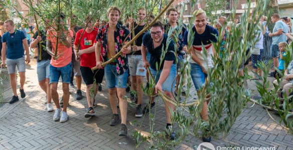 Het takken zwaaien wordt traditioneel georganiseerd door schuttersvereniging St. Sebastianus. De zwaaiers begeleiden het koningsschutterspaar naar de grote feesttent in het dorp. Een grote groep toeschouwers sloeg dit...