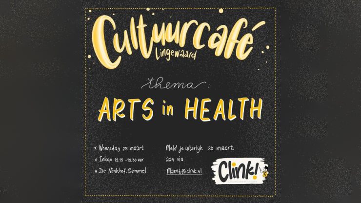 Het thema van de avond is Arts in Health: we gaan het hebben over de meerwaarde van kunst en cultuur voor gezondheid en welzijn. Gastspreker is Edith Elshof. Edith Elshof beweegt zich op het snijvlak van kunst, breinkennis en creatief denken. Vanuit haar overtuiging dat creativiteit ons tot mens maakt en ons helpt om in een complexe wereld staande te blijven, creëert zij ruimte voor ontwikkeling en duurzame verandering. Met een achtergrond in gezondheidswetenschappen en een grote passie voor kunst gebruikt zij haar kennis en ervaring om mensen anders te laten kijken. Als Brain Balance-expert, kunstenaar