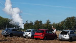 Het is een zonnige zondagmiddag wanneer op de rand van Haalderen met Bemmel de strakblauwe lucht zich vult met het geluid van brullende motoren. Een leeggehaald maïsveld toverde zich op 28 september om tot racebaan.
