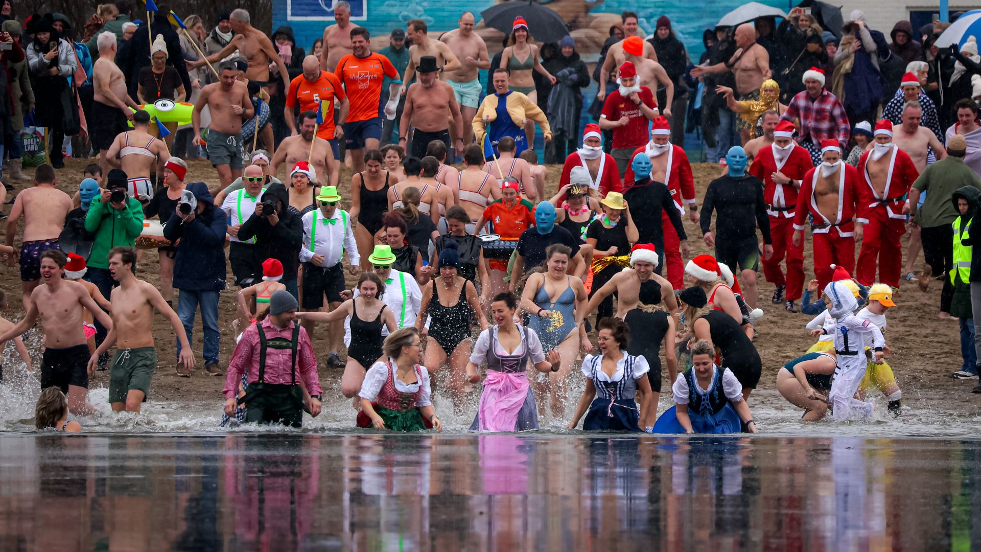 Onder luid gejuich van het publiek renden jong en oud het koude water in. De meeste deelnemers maakten direct rechtsomkeert, maar een enkeling waagde zich aan een echte duik. Extra kleur kreeg het evenement door de creatieve uitdossingen: van kerstmannen en dirndls tot sneeuwpop. Voor de origineelste outfit werd de Kanarie Cup uitgereikt.