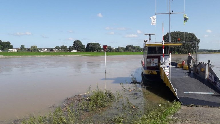 Op de Waal zijn van oost naar west de veerponten tot aan Tiel gestremd. Bij Tiel vaart de pont wel, maar bij het westelijker Varik-Heerewaarden weer niet.