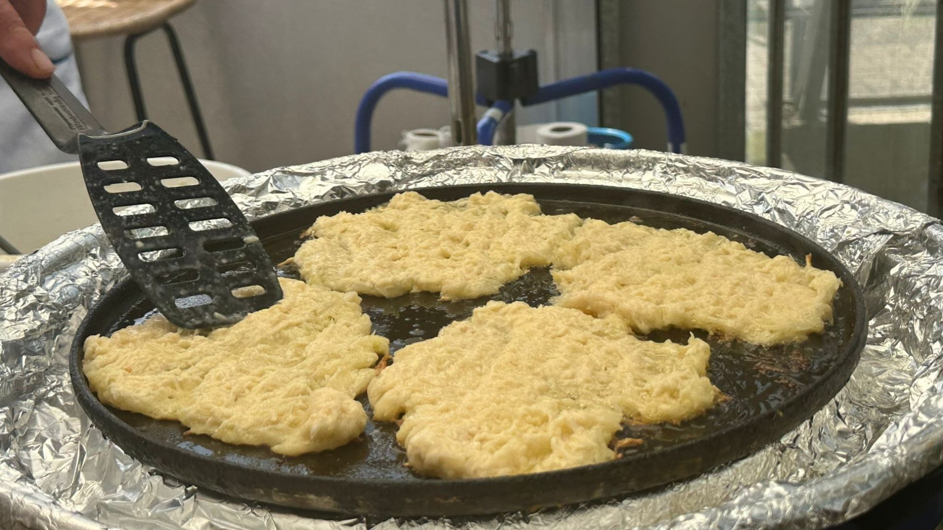 Het begint met schillen en raspen van aardappels, waarna de geur van versgebakken reefkoeken zich al snel door de lucht verspreidt.