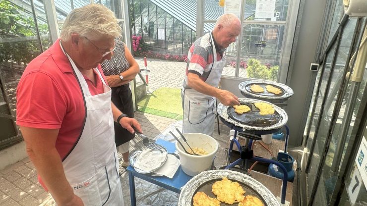 Vrijwilligers zorgen ervoor dat alles in goede banen loopt, terwijl bezoekers genieten van elkaars gezelschap, een praatje maken en natuurlijk smullen van het resultaat.