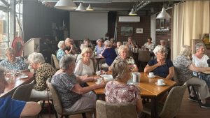 Tijdens de middag wordt er stilgestaan bij het belang van samenkomen en samenwerken. Een korte toespraak benadrukt de kracht van lokale verbondenheid – iets waar KBO Huissen zich al jaren sterk voor maakt.