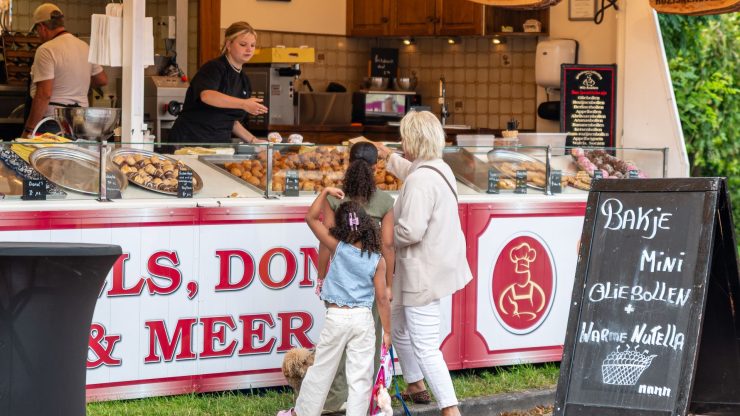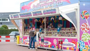 Midden op het terrein draait de draaimolen voor de allerkleinsten zijn rondjes, terwijl kinderen fanatiek eendjes hengelen en proberen een prijs te winnen bij het touwtje trekken of blikkengooien. Voor de zoetekauwen zijn er volop lekkernijen te vinden, van popcorn en suikerspin tot oliebollen en snoep in alle kleuren.