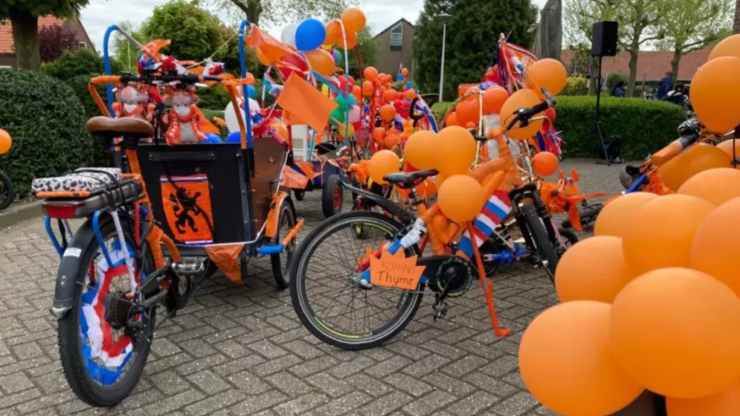 Vrijwilligers van Stichting de Zandse Kerk, Oranjevereniging Huissen-centrum –Huissen Zand – Brouwersland, Wijkorganisatie ’t Zand Binnen-Buiten en Scouting Huissen-Zand klaar om de jeugd van de Abacus en het Sterrebos te ontvangen voor de versierde fietsentocht en de spelen in de feestelijk versierde Zandse Kerk aan de Van Wijkstraat 33 in Huissen.