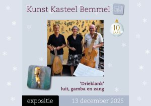 De 10e editie van Kunst Kasteel Bemmel vindt plaats op zaterdag 13 en zondag 14 december. De expositie is van 11.00 – 17.00 uur opengesteld voor het publiek.