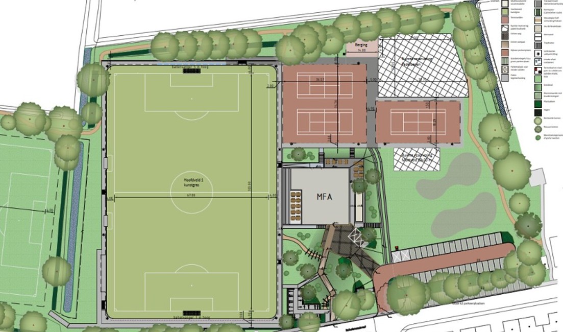 Een concept van het buitenterrein met het nieuwe MFA gebouw © Tennisclub Haalderen (TCH)