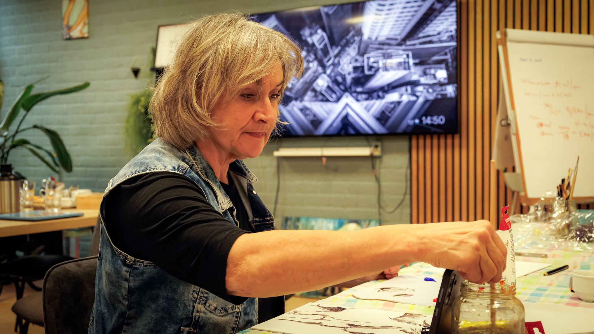 Louise de Haardt, bekend om haar kleurrijke schilderijen en toegankelijke manier van werken, gaf een heldere uitleg over haar werkwijze en de technieken die zij gebruikt. Ze had een aantal van haar kunstwerken meegenomen, die met veel bewondering werden bekeken. Bezoekers konden niet alleen genieten van haar werk, maar ook zelf aan de slag gaan met verf, penseel en doek.
