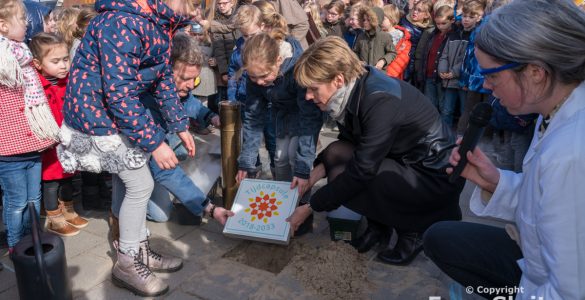 Huissen, 9 maart 2018 – Samen met wethouder Helga Witjes van de gemeente Lingewaard begroeven de leerlingen van De Boemerang in Huissen vandaag een tijdscapsule met duurzame toekomstwensen onder het schoolplein...