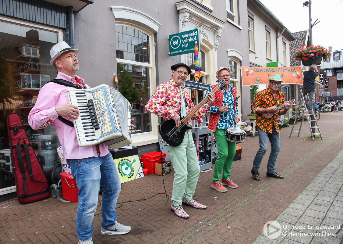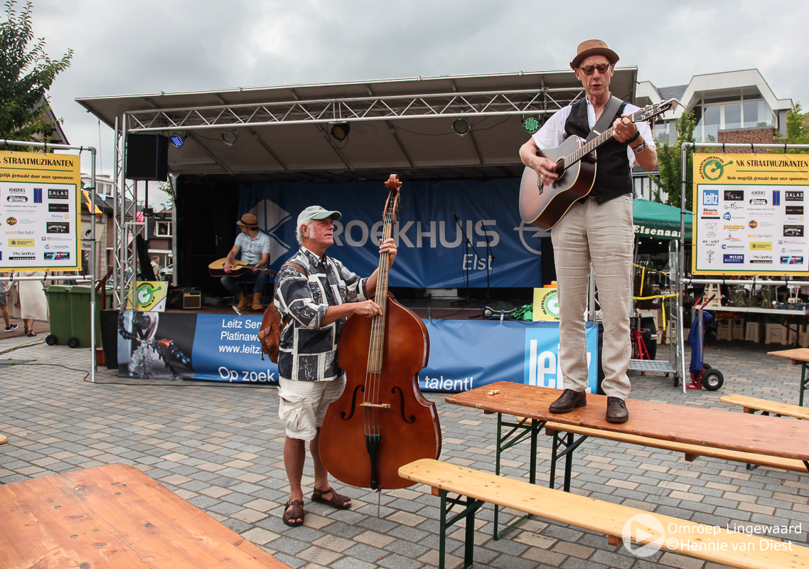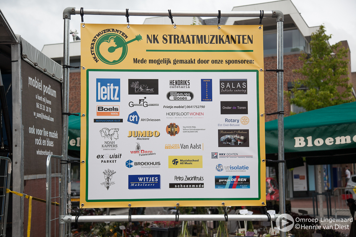 Met “Elst op stelten” 2de Pinksterdag net achter de rug, stond zaterdag 15 juni alweer het volgende evenement op het programma nl. het Nederlands Kampioenschap Straatmuzikanten. Door een aantal afmeldingen op het laatste moment kwam het aantal deelnemers op 30. Er is gestreden in een 3-tal categorieën : solist, duo en groepen. Tonny Dulos – organisator en initiator van het NK- was met name tevreden ook de vele aanmeldingen van deelnemers uit de regio en het feit dat door sponsering er een hoofdact – optreden van The Amazing Stroopwafels- aan het programma kon worden toegevoegd. Ondanks de ongunstige weersvoorspelling is er vrijwel geen regen gevallen en kon het publiek genieten van een variëteit aan muziek. Ook was er weer een beperkte braderie aanwezig. De jaarlijkse hoofdprijs – de stenen Elstar Appel – is gewonnen door De Kiloknallers uit Leiden.