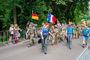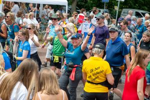 Na de passage van de laatste wandelaars kwam de bezemwagen, waarmee de doorkomst officieel werd afgesloten. Ondanks enkele regendruppels bleef het verder prima wandelweer, waardoor de dag feestelijk werd voortgezet.
