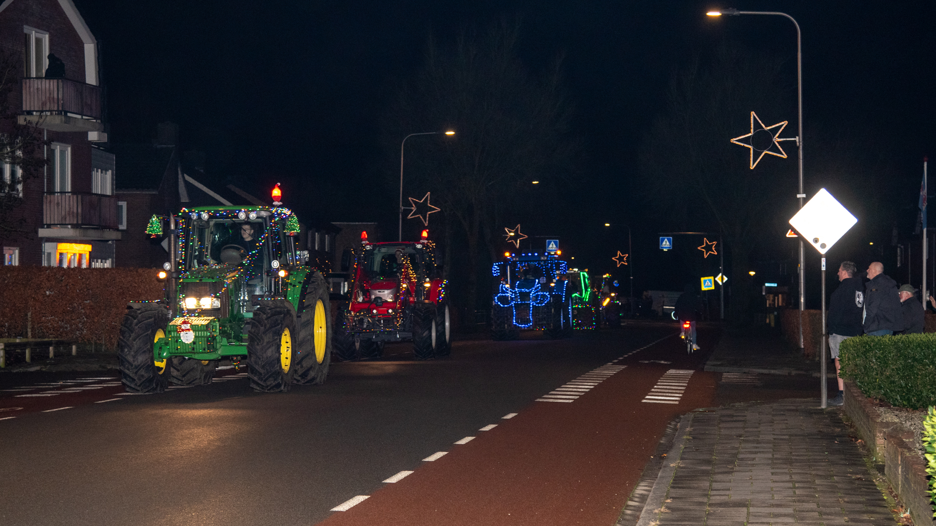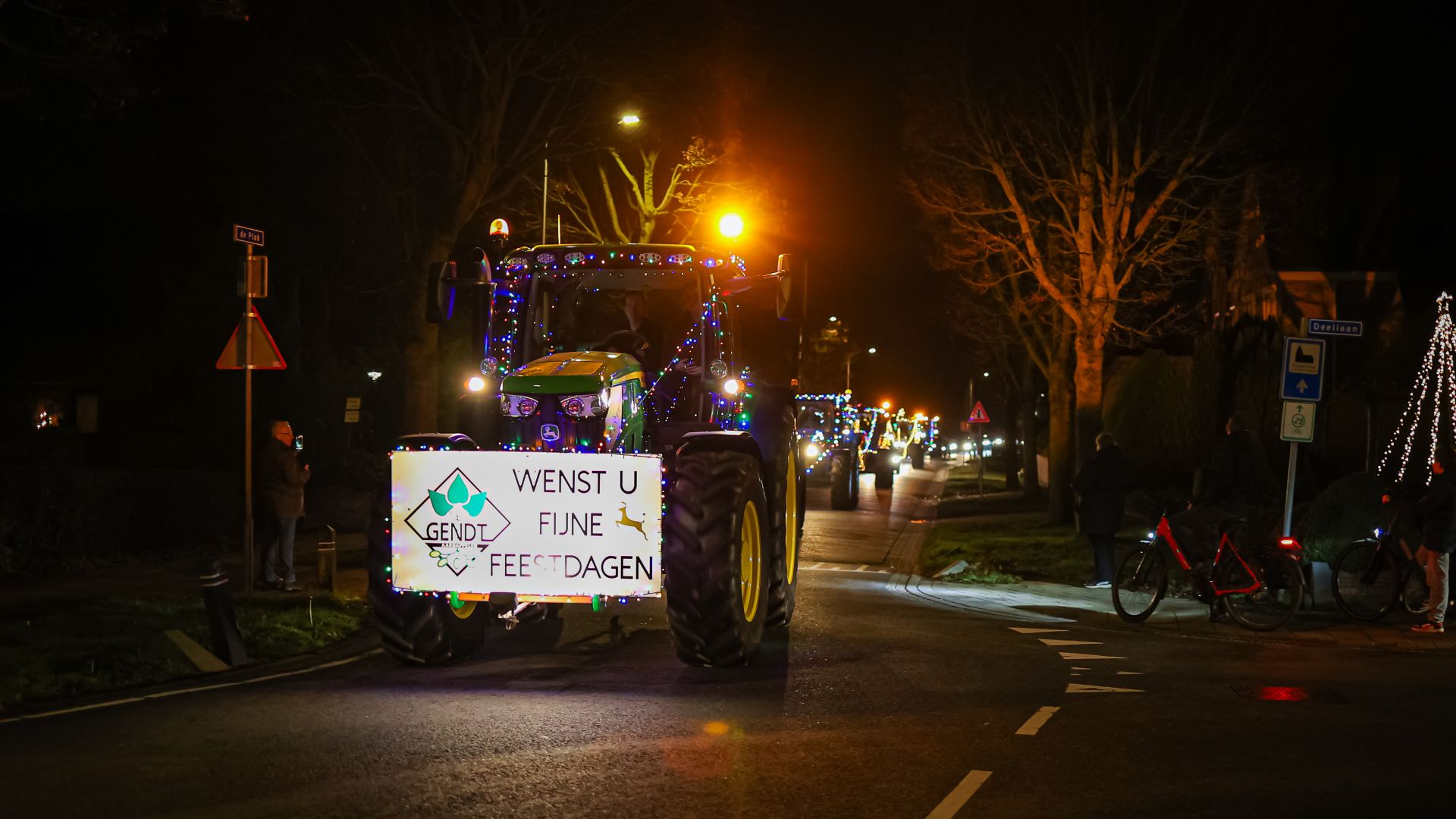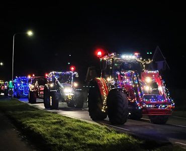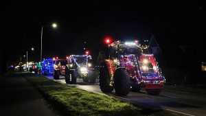 De deelnemende boeren hadden hun trekkers uitbundig versierd met kerstverlichting en vormden samen een indrukwekkende parade. Langs de route stonden vele inwoners om de stoet te bewonderen.