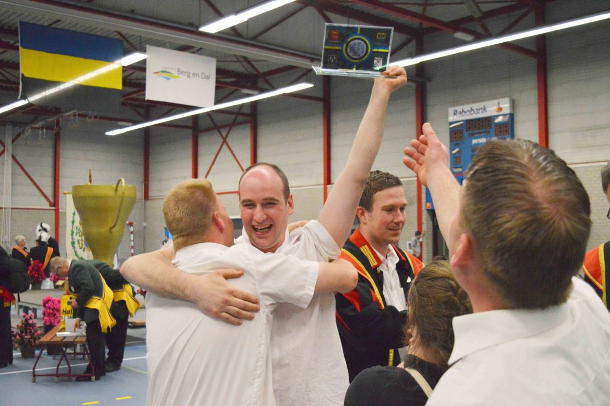 Omstreeks 10.30 uur was het seniorenkorps aan de beurt. Zij vendelden uitstekend! Daarna mocht iedereen tot 17.30 uur wachten op de prijsuitreiking. Die was voor het schuttersgilde niet minder spectaculair dan de opening, door met een Gelders kampioenschap af te sluiten.