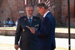 Dit werd gedaan door de burgemeester van de gemeente Lingewaard Mevr. Marianne Schuurmans-Wijdeven en marsleider en voorzitter van de Stichting De 4Daagse Henny Sackers.