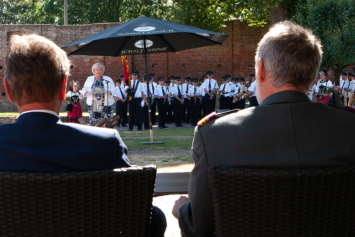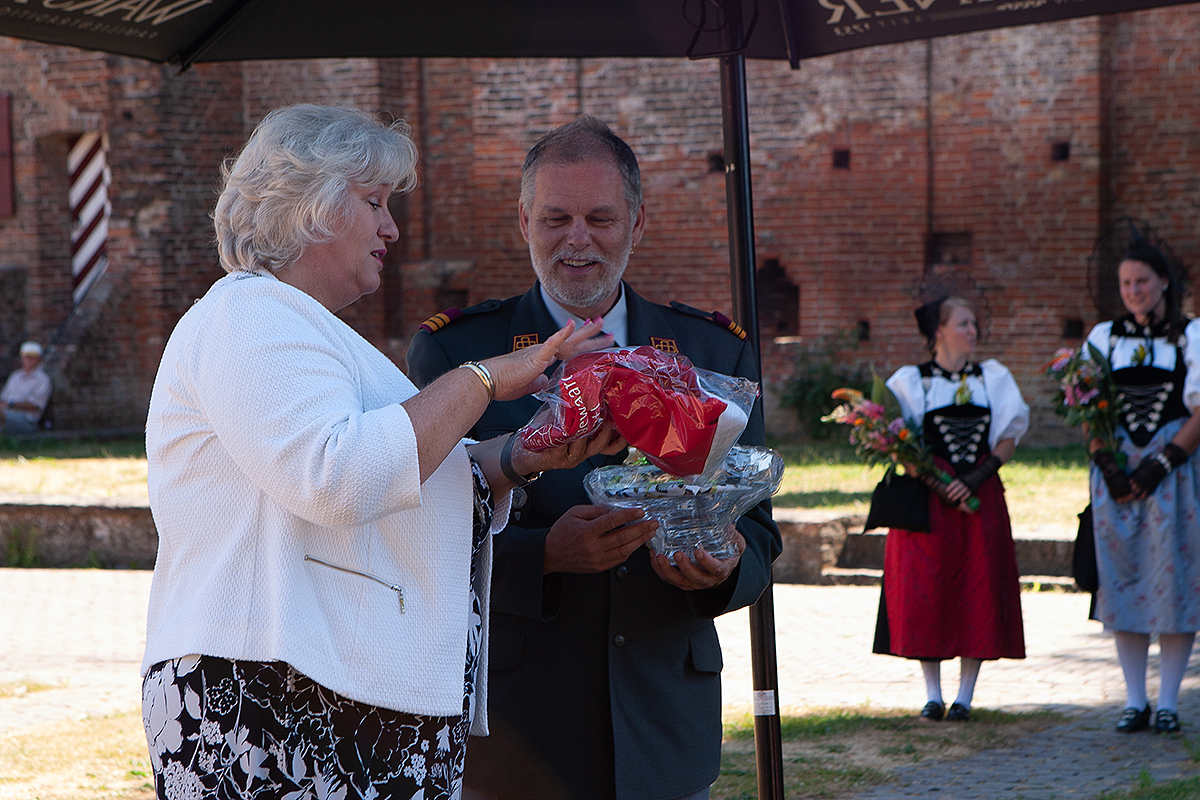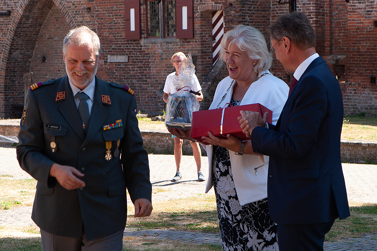 Dit werd gedaan door de burgemeester van de gemeente Lingewaard Mevr. Marianne Schuurmans-Wijdeven en marsleider en voorzitter van de Stichting De 4Daagse Henny Sackers.