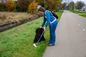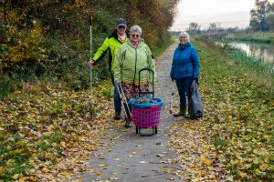 Op de foto’s ziet U vrijwilligers die langs de Linge tussen Bemmel en Huissen het zwerfafval opruimden.