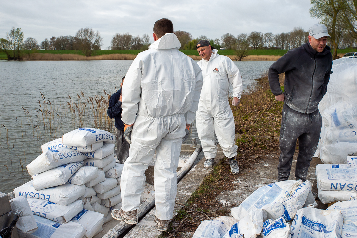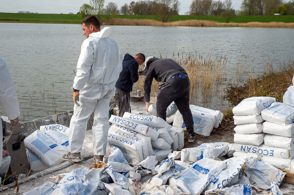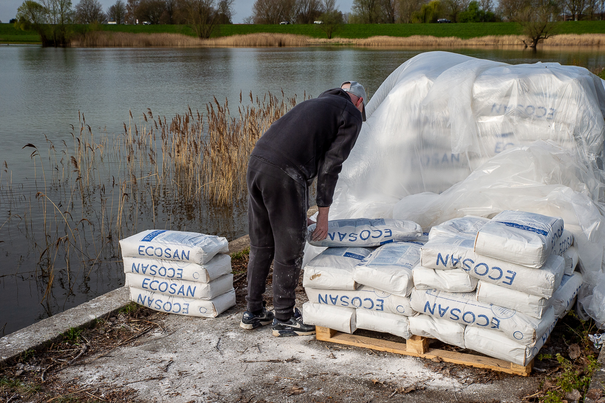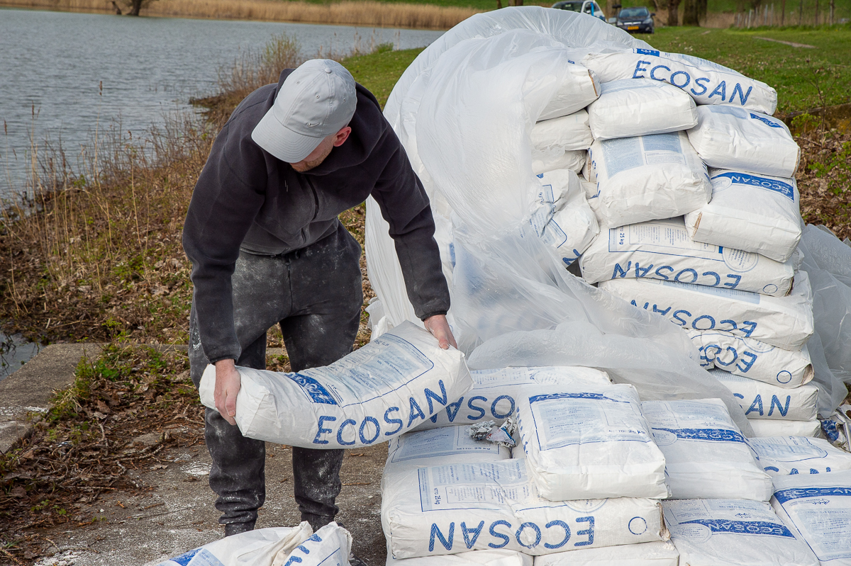 Waar vorig jaar nog 15.000 kilo werd ingezet, bleef het dit jaar bij 7.500 kilo. Ecosan helpt de sliblaag op de bodem te verminderen en voorkomt tegelijkertijd gisting en de vorming van schadelijke gassen. Ook neemt de kans op algenbloei hierdoor af.