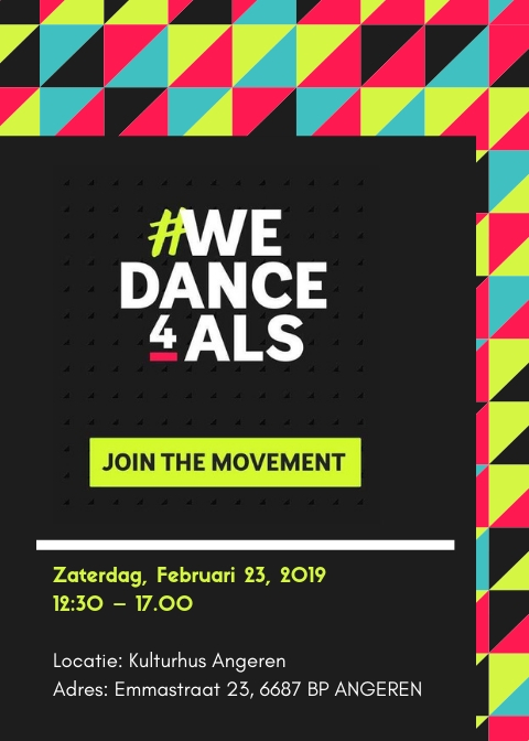 Op 23 februari 2019 wordt er door deze 2 instructeurs een Zumba Marathon georganiseerd in het Kulturhus in Angeren waarbij de winst gedoneerd wordt aan Stichting ALS Nederland. Iedereen die van dansen houdt, of Stichting ALS wilt steunen is van harte welkom!