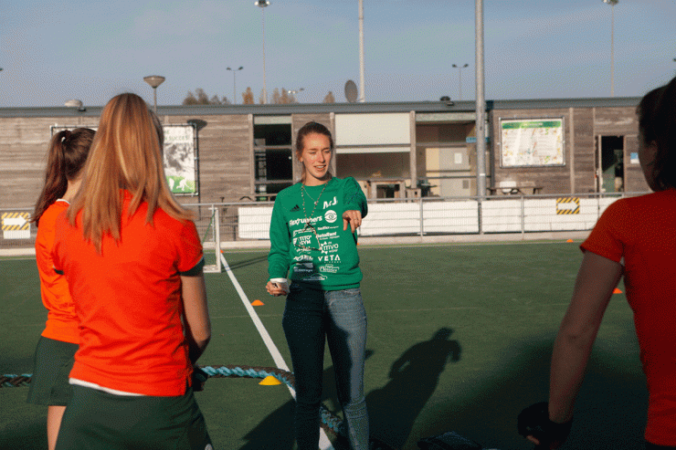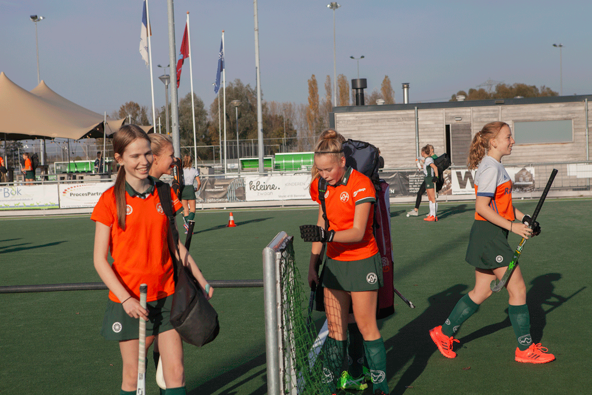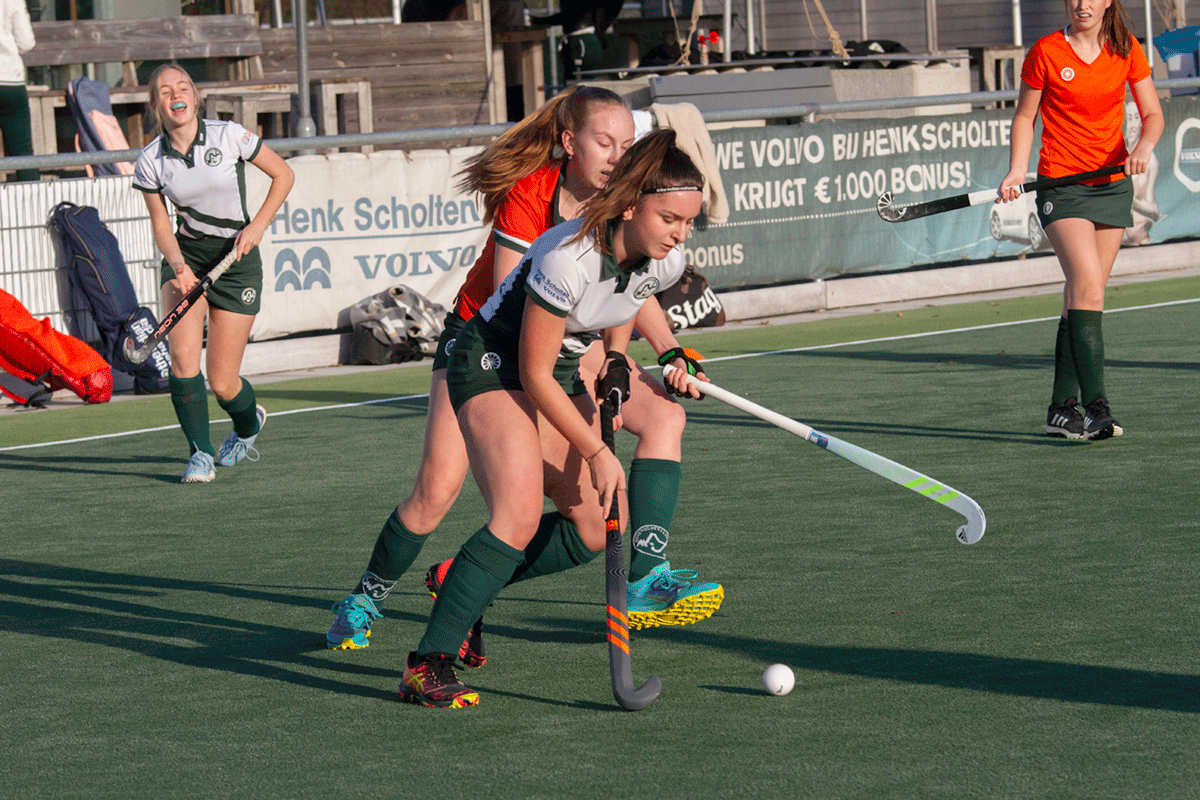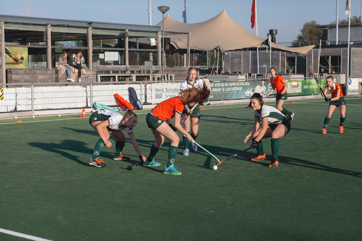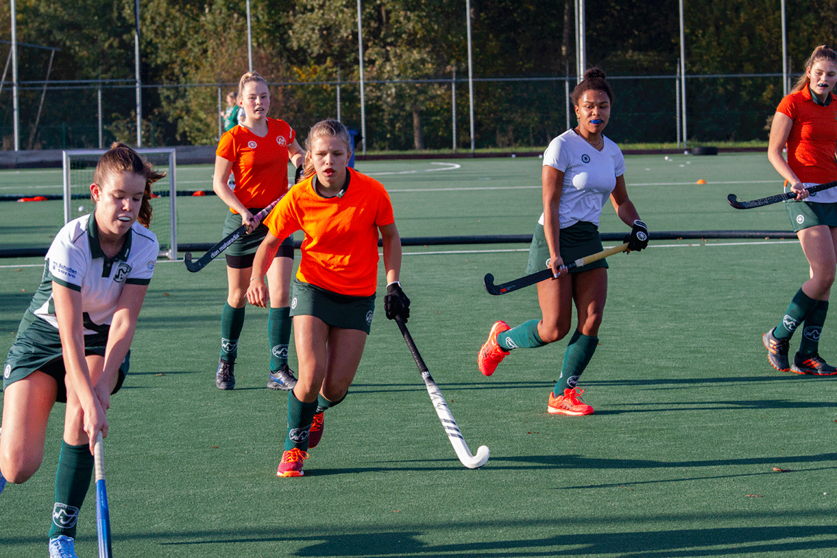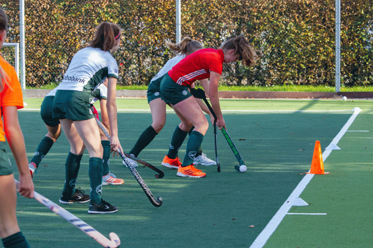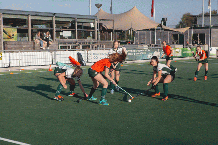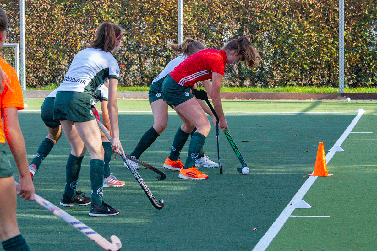 3 tegen 3 is een heel intensief, snel en technisch spelletje. Het lijkt een beetje op zaalhockey. Je speelt buiten op een 1/8e veld wedstrijdjes tegen elkaar met teams van 3 spelers. Je speelt alleen met veldspelers en er is geen keeper. Ieder team heeft 1 of 2 wisselspelers. Dit heb je ook nodig omdat het spel heel snel “heen en weer” gaat en erg intensief is.