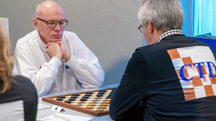 De wedstrijd leverde een vlotte overwinning op. Guntis Valneris beet tegen nationaal kampioen Jan Groenendijk het spits af. Na enige probeersels over en weer ging de partij verder gelijk op. Alexander Baljakin zette de eerste winst neer door zijn tegenstander met een omsingeling in te pakken. Odin Mol kwam tot een gelijkwaardige remise. Wouter Ludwig had wel wat kansen maar miste de juiste voortzetting zodat hij uiteindelijk in remise moest berusten. Toine Brouwers boekte met een doorbraak via de vleugel een makkelijke winst. Fred de Koning liep in een aanvankelijk gelijk opgaande strijd in een zetje. Dat leverde hem een verloren stand op. Zijn tegenstandster speelde dat niet vlekkeloos uit zodat het evenwicht weer tot stand kwam. Gérard Jansen speelde goed tegen vijfvoudig wereldkampioen Shvartsman en kwam tot een schijf voordeel. Zijn tegenstander kreeg gaandeweg wat compensatie maar Gérard verloor door tijdsoverschrijding. Johan Krajenbrink oefende wel wat druk uit maar dat was niet voldoende voor de winst. Jos Stokkel kreeg al snel voordeel en bouwde dit vakkundig uit tot winst. Jasper Lemmen won zijn partij op een vergelijkbare wijze.