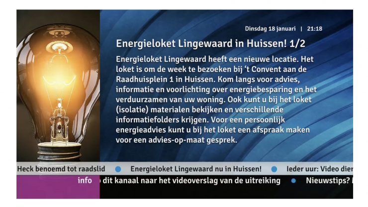 Enkele maanden geleden hebben wij ons tv-kanaal drastisch aangepast. Vanaf dat moment tonen wij een kabelkrant met nieuws uit onze gemeente, afgewisseld met nieuwsvideo’s en met muziek van onze radiozender op de achtergrond. Maar…wij zijn nog niet klaar! Graag horen wij van uw mening. Wat vind u goed maar vooral wat kan anders of beter? Uw reactie zien wij graag op: redactie@omroeplingewaard.nl.